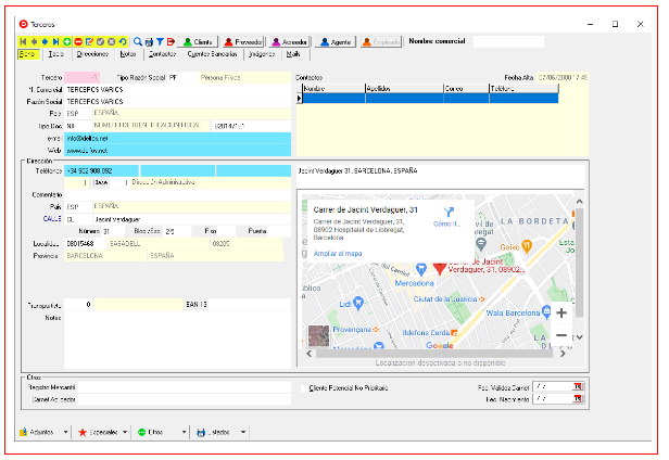 • En la nueva versión de terceros, dependiendo del país se determina la dirección por localidad o seleccionando poblaciones.